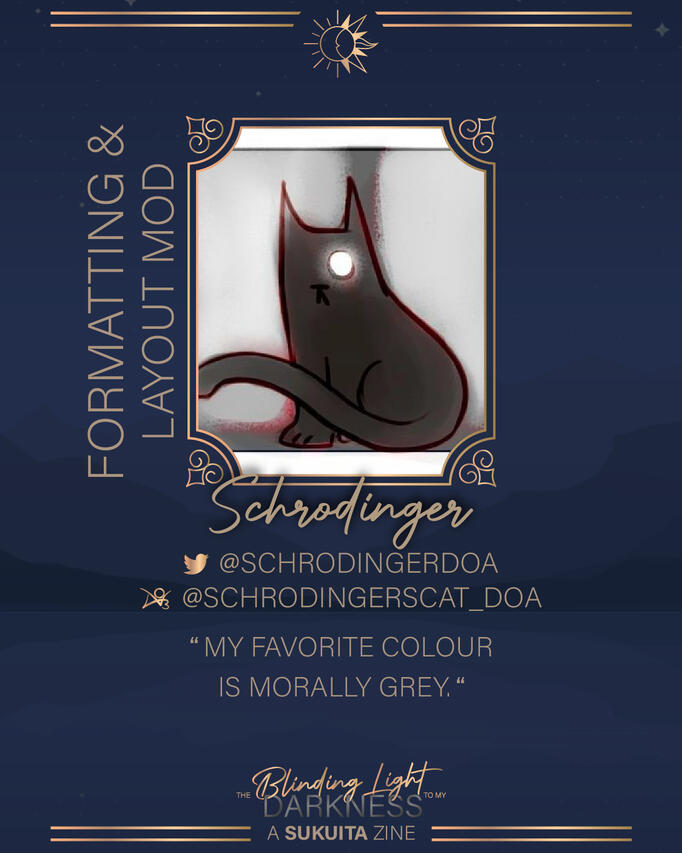 Mod Activity: Formatting & Layout ModJust a cat who loves the darkness offered by SukuIta