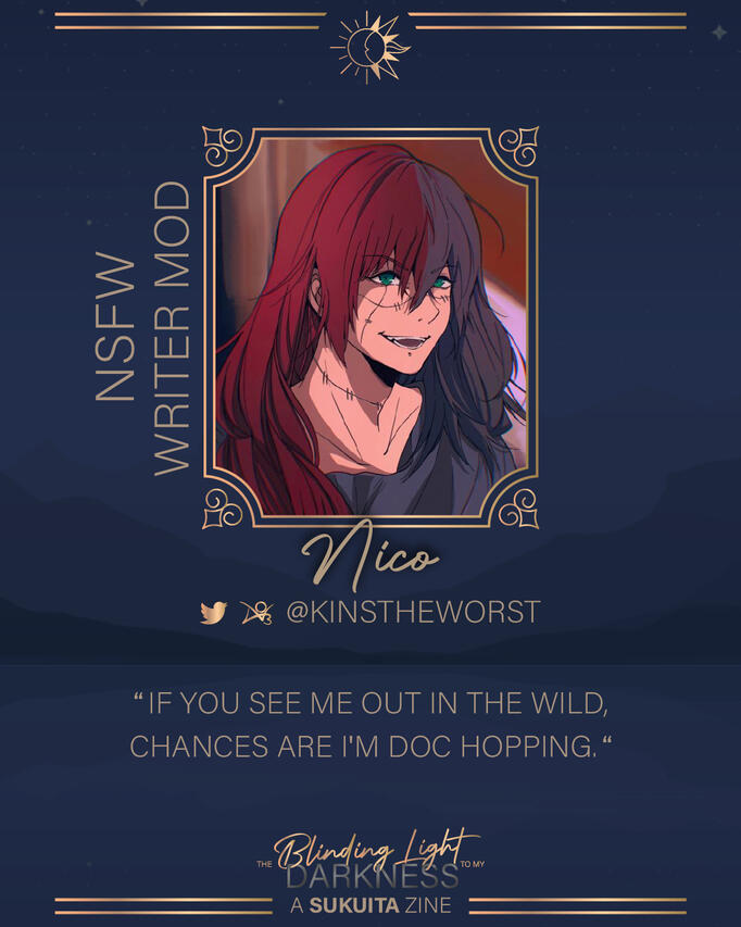 Mod Activity: NSFW Writer Mod, Finance ModHello hello!! Nico here, I’m 19 and getting back into all things JJK recently after being hyper-fixated on another anime for a year