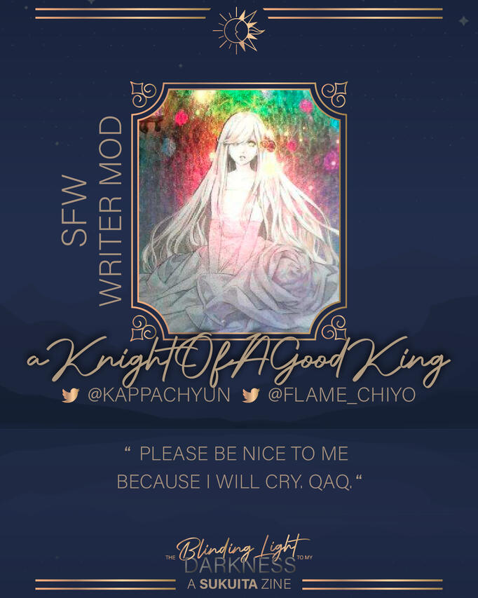 I write! I swear I do, just too many wips at the moment, you can find me on any platform under kinstheworst!!A big thank you to Lynea for having me on the team, SukuIta is one of my all-time favorite ships and I’m pumped to help out wherever I can!!I’m super excited to be here, and I’ll do my best into helping everyone out!!